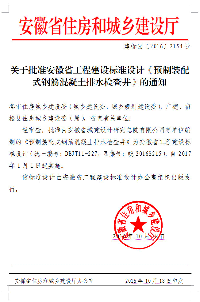 關(guān)于批準安徽省工程建設標準設計《埋地排水用內(nèi)肋增強聚乙烯(PE)螺旋波紋管管道工程選用及安裝圖集》的通知
