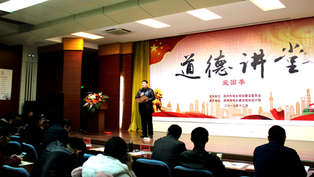 為了進(jìn)一步培育和踐行社會(huì)主義核心價(jià)值觀,夯實(shí)公民思想道德教育活動(dòng)平臺(tái),大力宣傳學(xué)習(xí)道德模范和身邊好人的感人事跡,不斷提高文明單位創(chuàng)建水平, 2017年12月8日下午在市規(guī)劃建設(shè)委附屬二樓會(huì)議中心,由市城鄉(xiāng)規(guī)劃建設(shè)委員會(huì)主辦、市城鄉(xiāng)規(guī)劃設(shè)計(jì)院承辦的市規(guī)建系統(tǒng)2017年度“道德講堂——愛國(guó)季”活動(dòng)。市規(guī)建委機(jī)關(guān)、在建設(shè)大廈委屬二級(jí)機(jī)構(gòu)在崗?fù)尽⑵渌瘜賳挝淮砉?20多人參加,市規(guī)建委主任、委黨組書記朱林及部分在崗委領(lǐng)導(dǎo)共同參加本次講堂活動(dòng)。