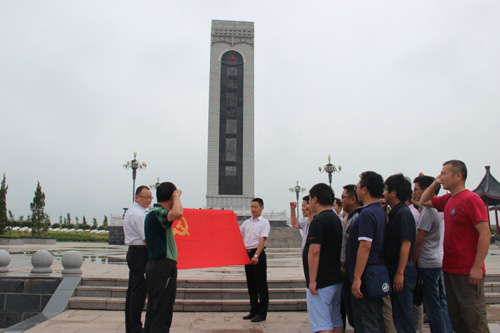 在紀(jì)念碑下,全體黨員面對鮮紅黨旗舉起右手高聲宣誓,重溫入黨誓詞,表達(dá)為黨的事業(yè)奮斗終身的決心。隨后,全體人員在革命烈士紀(jì)念碑前,全體肅立,向革命先烈默哀致敬,行三鞠躬禮,追思革命先烈的豐功偉績;顒幼詈髤⒂^了革命烈士紀(jì)念館,進一步了解革命先烈們艱苦卓越的斗爭歷史和大無畏的革命獻身精神。