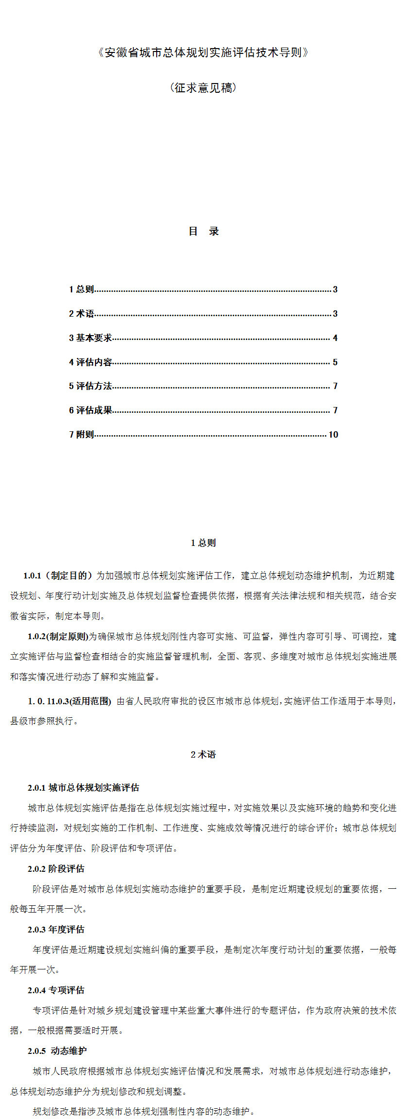 《安徽省城市總體規(guī)劃實施評估技術(shù)導則》